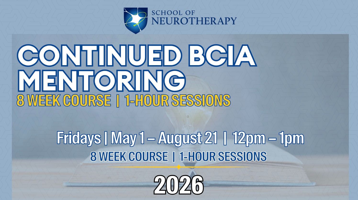 The BCIA Mentoring and Neurofeedback Protocol Development Course is offered in ten (10) non-consecutive sessions to comprehensively cover a range of topics relevant to neurofeedback certification and protocol development. Offered as a companion course to the BCIA Certification Course - each 2-hour session will focus on progressive review of the BCIA modules #1 – 10, and a second hour engaged in analysis and discussion of case studies.