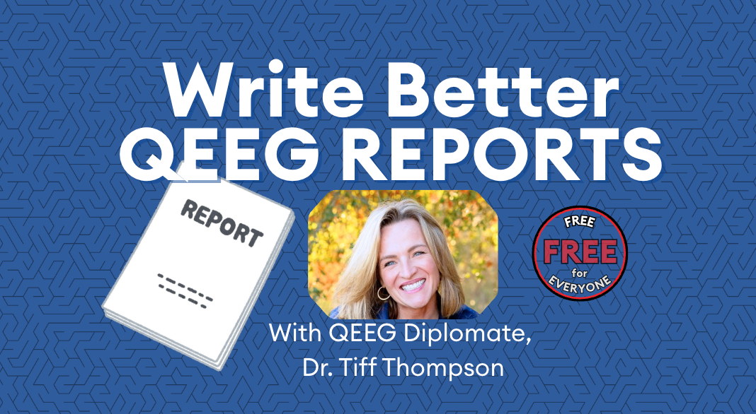 Join us for an engaging one-hour training. Are you a clinician or neurofeedback professional who wants to elevate your QEEG report writing skills? This is for you!